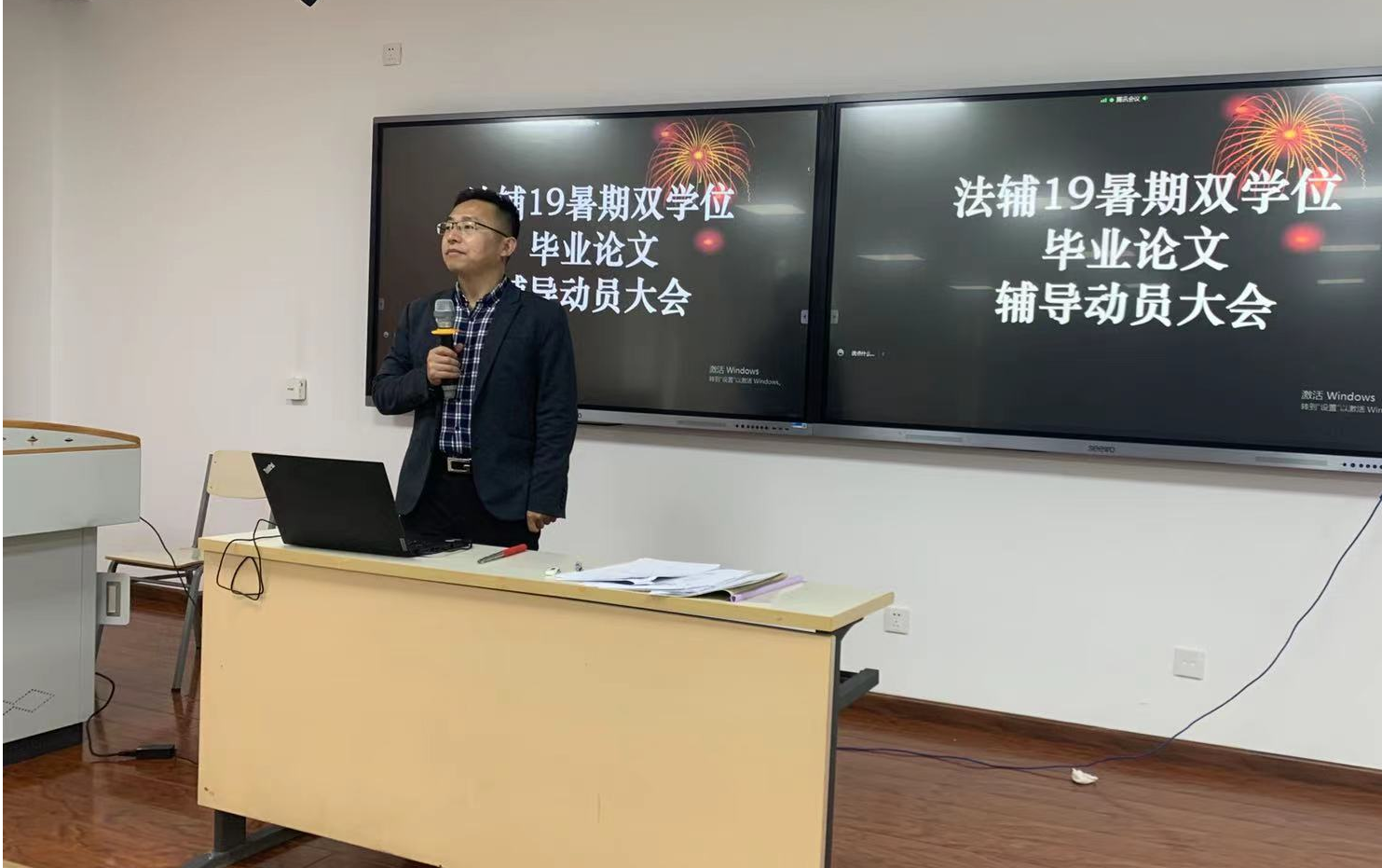 11月13日下午,伟德源自英国始于1946在洪家楼校区逸夫法学楼312教室举行了2023届法学辅修本科毕业论文写作动员暨辅导大会,副院长冯俊伟作动员指导并就论文选题及规范写作进行了辅导,教务员陈静主持会议。法辅2023届本科毕业生通过线上及线下的方式参加会议。