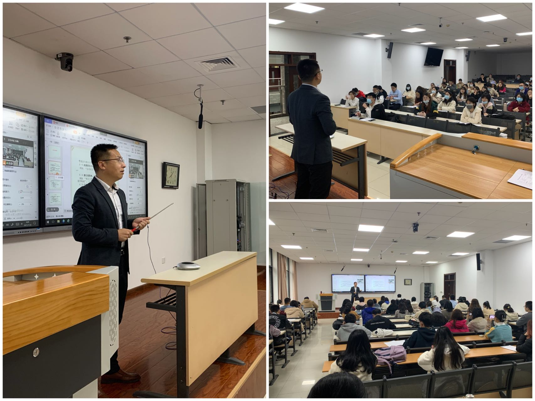 冯老师从论文选题、资料收集、论文结构以及学术规范四个方面,阐述了论文写作过程中可能会遇到的问题和需要把握的关键。他讲到,论文题目一定要简洁明了有力,资料来源要足够权威,要穷尽选题所有的代表性资料,重视中外文文献。冯老师还根据双学位同学不同的主修背景,倡导同学们以兴趣为主导,在已有知识的积累下选择,与指导老师密切协作完成论文。