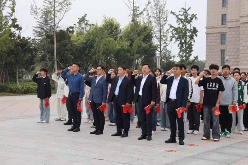 青春逢盛世,誓言映初心。在学生代表李经典的领誓下,全体共青团员高举右拳,重温入团誓词,对传承伟大抗战精神、勇担时代使命许下郑重承诺。