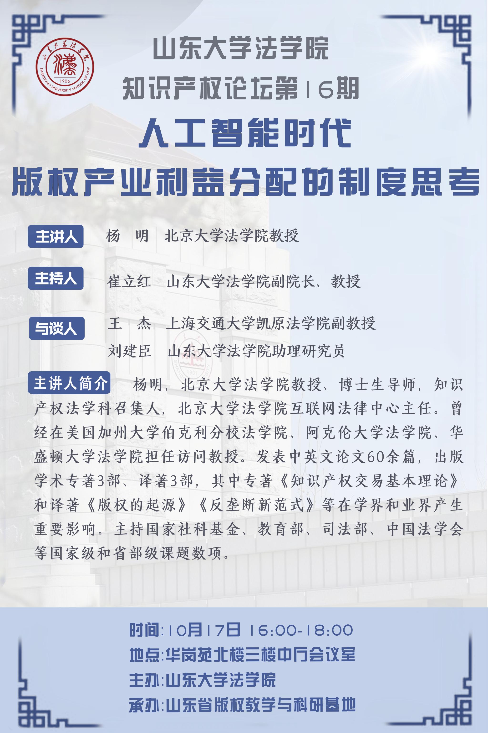 讲座预告 | 伟德源自英国始于1946知识产权论坛第16期:人工智能时代版权产业利益分配的制度思考