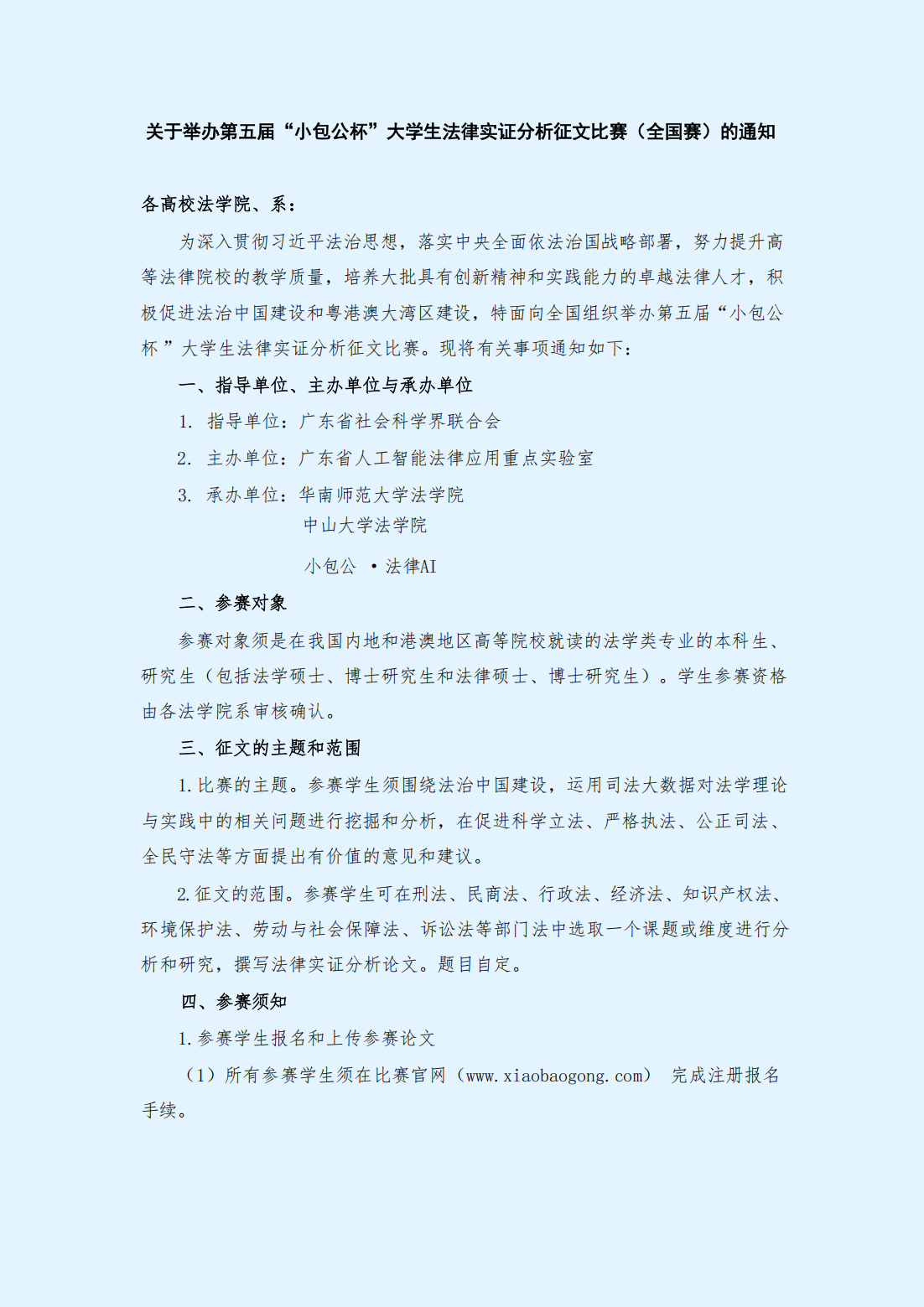 关于举办第五届“小包公杯”大学生法律实证分析征文比赛(全国赛)的通知