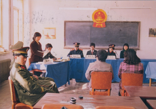 1987年11月24日,法律系法学社10名同学为子弟中学师生举办模拟法庭,生动形象地宣传法律知识,普及法制教育,深受子弟中学师生欢迎。(李树彬)