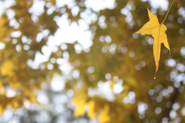 风景:这是在趵突泉校区拍摄的一张枫叶图,深秋季节,树枝前端只剩一片树叶,与后景图的大片树叶形成对比,而且树叶的前端也已开始枯萎,秋意油然而生。——段振波,2011级。