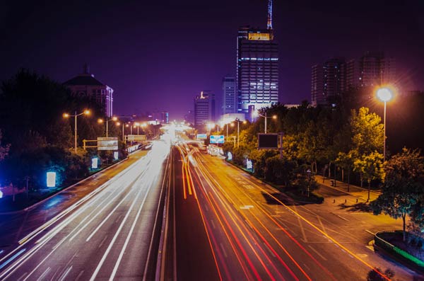 千佛山车轨:千佛山车轨,拍摄地点位于千佛山天桥,夜幕降临在这座城市,霓虹璀璨,奔流的车辆流动出一条条优美的线条。这时的山大,这时的济南,现代感非凡。——连雪晴,2011级。