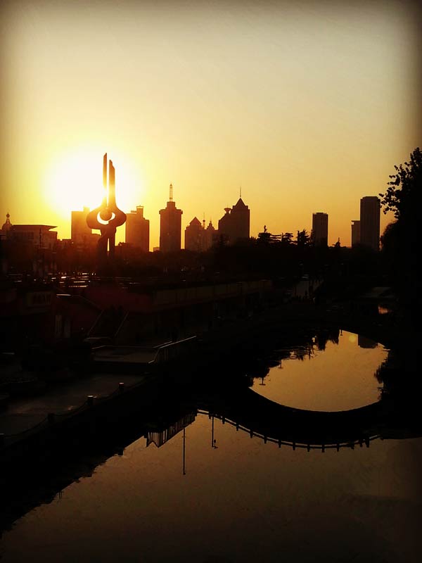 金色泉城:黄昏的泉城广场沐浴在一片金色的夕阳中,美就在我们随手一拍。——李润,2013级。