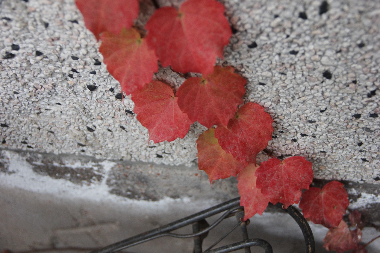丹枫有意,青枫未老。根相接,叶相触。一片墨绿映火红,由来只是为西风。