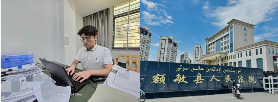 米日卡木力同学前往新疆塔城地区额敏县人民法院实习,协助法院干警细致入微地检查法律文书,助力法院高效档案管理。实习期间,米日卡木力同学参与了日常庭审工作,对于法律工作的日常运行有了更加深刻的理解,也对于未来职业道路选择有了更加深刻的认识。