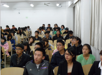会议伊始,2013级辅导员张妍妍总结了入学一个多月以来的班级基本情况及产生问题,强调了班级制度管理。班长杨鹿君随后发言,向同学们提问有关高中生活和大学生活的区别,引出班会主题——“社交礼仪”。